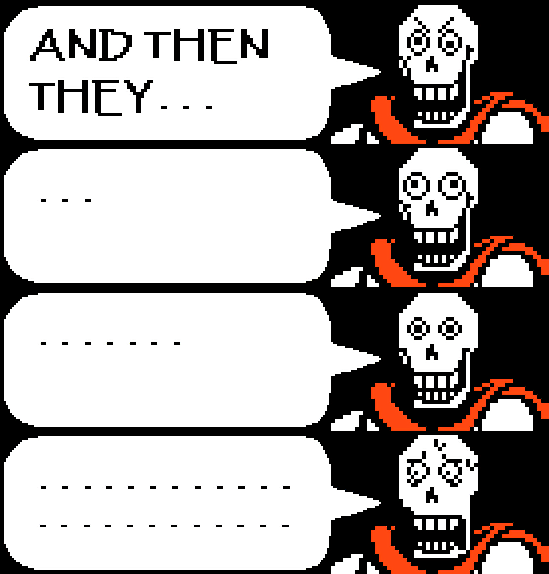 Papyrus teaches Frisk a Lesson Flag rzthree Channel: undertale (See more...) prev next random - Fav Favorite Comment ✖ PrevTop NextComment (Enlarge) prev next Tags: Undertale | the sax | Frisk | papyrus | Spaghetti | Regretti +130 Views: 14354 Favorited: 34 Submitted: 12/31/2015 Share On Facebook -Favorite +Favorite Unsub from rzthree Subscribe to rzthree Subscribe to undertale Unsub from undertale