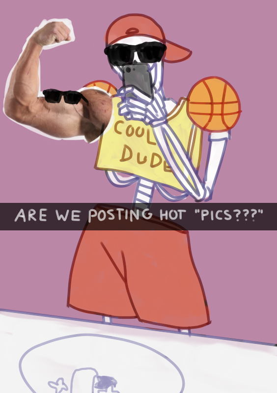 In the game, Papyrus posts this image onto the Undernet, and it is described as having pasted on arms with sunglasses on them, while he too wears sunglasses, and stands next to a mirror reflecting himself, all with spaghetti. He says it is a picture of himself and his cool friend.