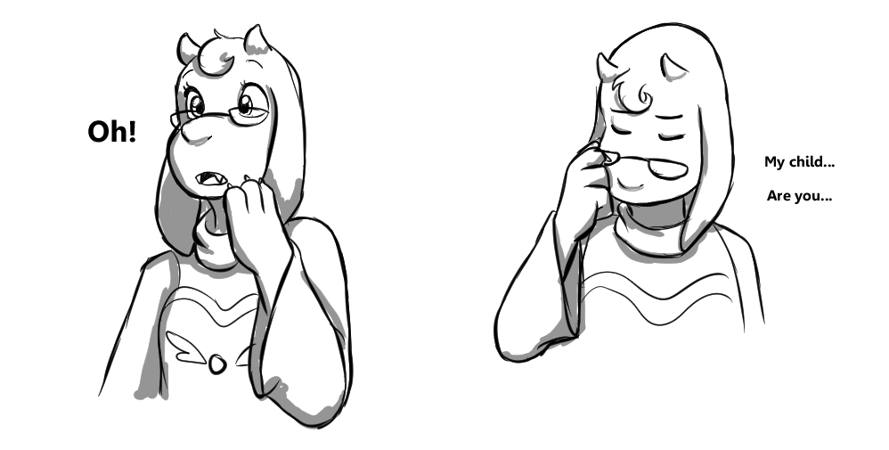 Like, if someone said "you have to shoot one of your kids or we're shooting both" and then they said "You have to choose if Toriel gets together with Sans or Asgore" I'd take a longer time decid... oh **** it.