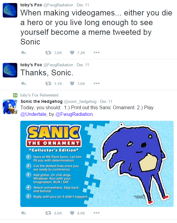 Also, Toby Fox should be ******* glad the Sonic tweets mentioned his game, they're hilarious.