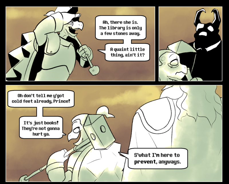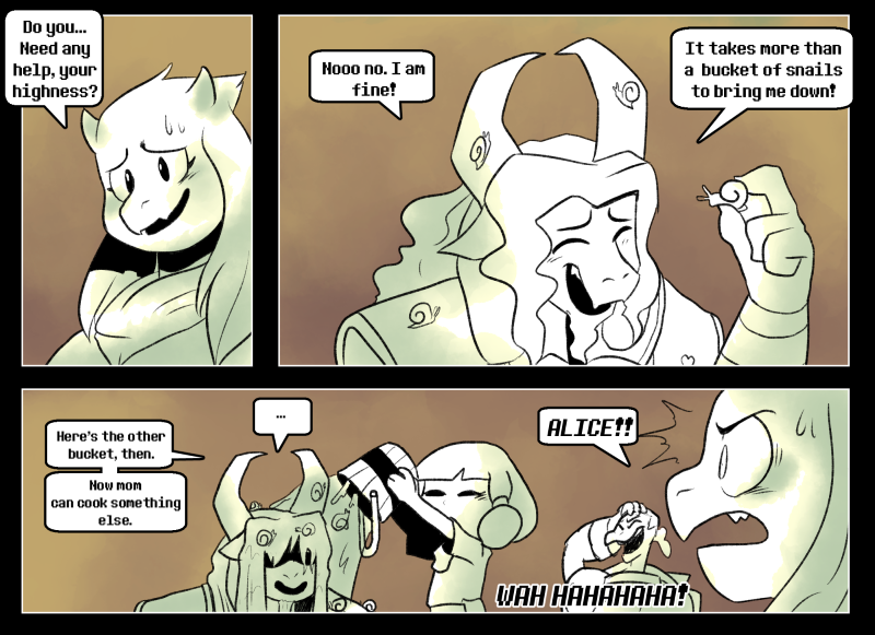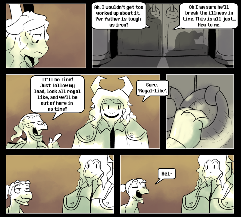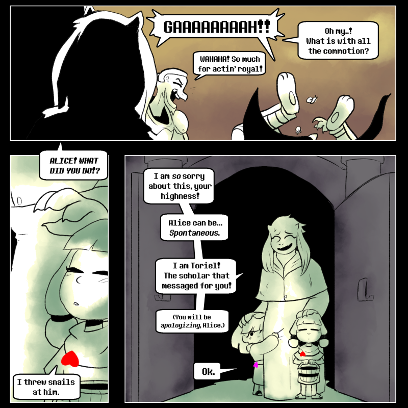 If you're out of the loop and haven't seen Dreemurr Reborn yet, this is Gerson telling the story of how he and Asgore first met Toriel, before the Monster-Human war. Needless to say, it's gone into the territory where it's ENTIRELY fanmade, and not based very hard into the game itself, so take it with an entire shaker of salt.