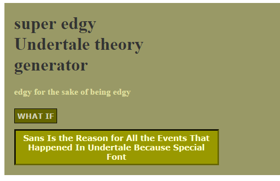 I don't understand what you're going for here. Yeah, most of these are stupid and obvious ones. But there is a few that aren't, like the Gaster one. Is there a theme I'm missing?