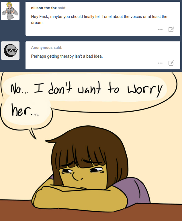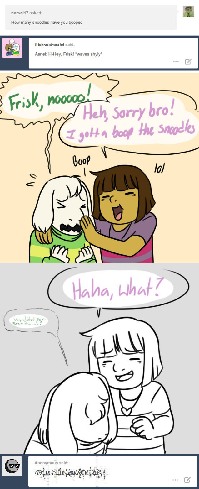 Okay, so that's not the last of the "Somethingswrongwtihfrisk" posts, but it's the last one you'll see reposted by me this week. There are also some more of the cute & happy ask posts that were posted, but If I repost those, it will be after this is done. If you want to stop hanging on this cliff, go tojust-face-planted.tumblr.com/