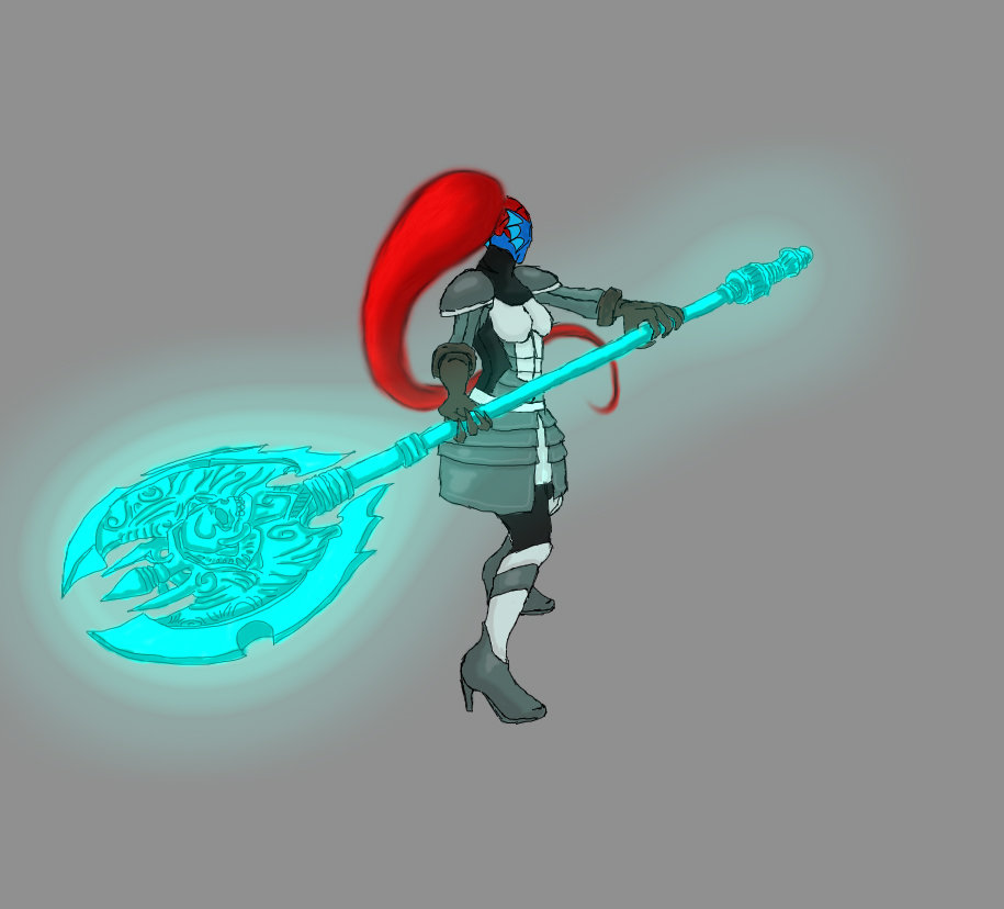 But before you go pointing that out, notice the description: 'wanned to share the idea'. Which means, I dont give a crap what you think about the art or my interpretation of Undynes looks, my choice in her armor, or even what kind of axe I chose to trace. I just wanna hear your opinion about, does she look cool with an axe or not? And would it suit her? What other kind of weapons would look good on her?