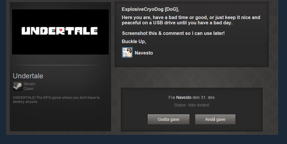 Undertale content is ******* everywhere, seems like something I could get into. well I lost my job a couple months ago, took me a month to get back to work. Still catching up on the bills. My second child was born two weeks ago, just weeks after my wife crashed our car (everyone is okay, but the car was a loss) making it difficult to get to my new job, and causing me to take leave of absence from school. Could be cool to fill some down time