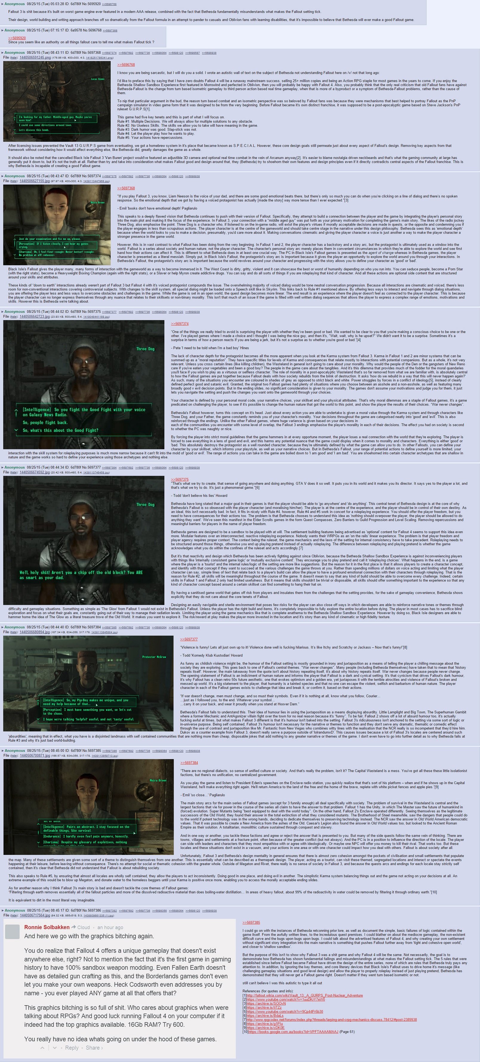 Of course, Fallout 1 and 2 are from Ye Olden Days when pretty much all games suffered from ****** design in one way or another. They weren't perfect. (For instance it's insanely easy to beat Fallout 1 by just walking away from danger. Seriously. It's not even a glitch. It's just a consequence of the janky combat system.)