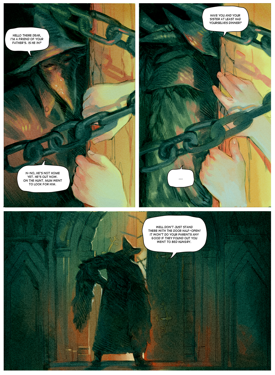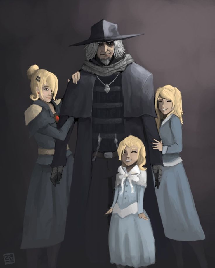 In Bloodborne there are hunters that fight beasts. The Lady with the beak masks hunts hunters who turn into beasts themselves. The guy is Father Gascoigne. Who isnt called father because of religious purposes, he just has two daughters. the crow mask lady is ask to cook his two girls dinner because their father is turning into a beast, and the crow lady will have to kill him soon. It was kinda a final wishes kinda thing. Very sad