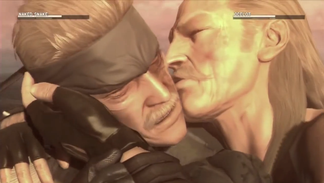 But that's not really Ocelot. He was possessed by the ghost of Snakes brother. So that is his brother kissing him and oh god that isn't making this any better...