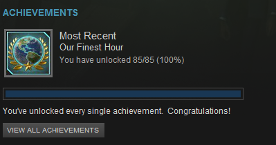 The only one I don't got is beating the game on classic without buying a squad size upgrade (enemy within). I've blown through normal dozens of times, often with red mist and ironman activated and my assaults having expensive new plasma rifles before even mechtoids deploy. But my **** keeps getting wrecked the moment I up the difficulty.