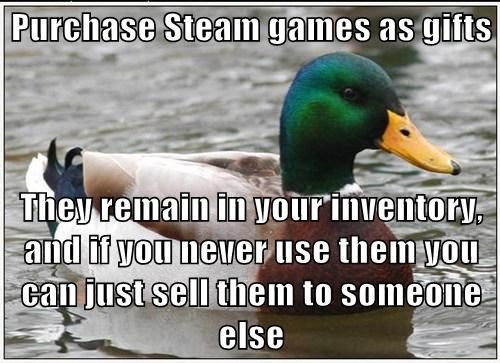 Not you can buy a gift and just have it in your inventory to trade for something. I gave away Borderlands 2 just the other day and it sat in my inv for a while.