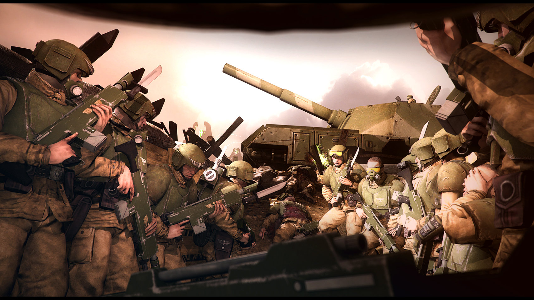 Large-scale warfare favors the Guard in the fact that their main strengths are at their topmost when in the hard grind of attirition warfare. Trench warfare - or at least, WWII-era trench warfare - is for the most part frowned upon, as most competent regiments employ fluid command dynamics, individual initiative and squad-based operation.