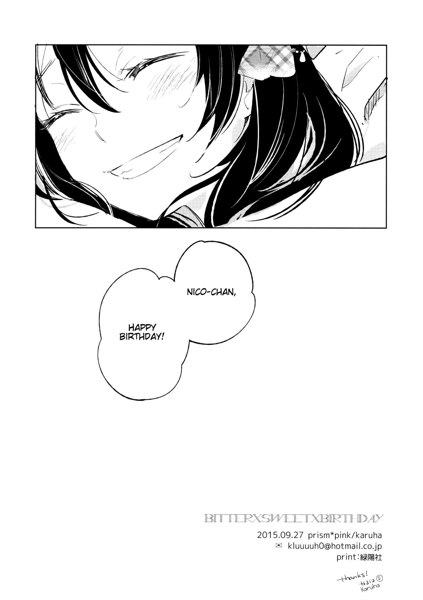 Bitter x Sweet x Birthday, a Love Live doujin written by Karuha. Check out more of her work over at dynasty-scans.com/authors/karuha !