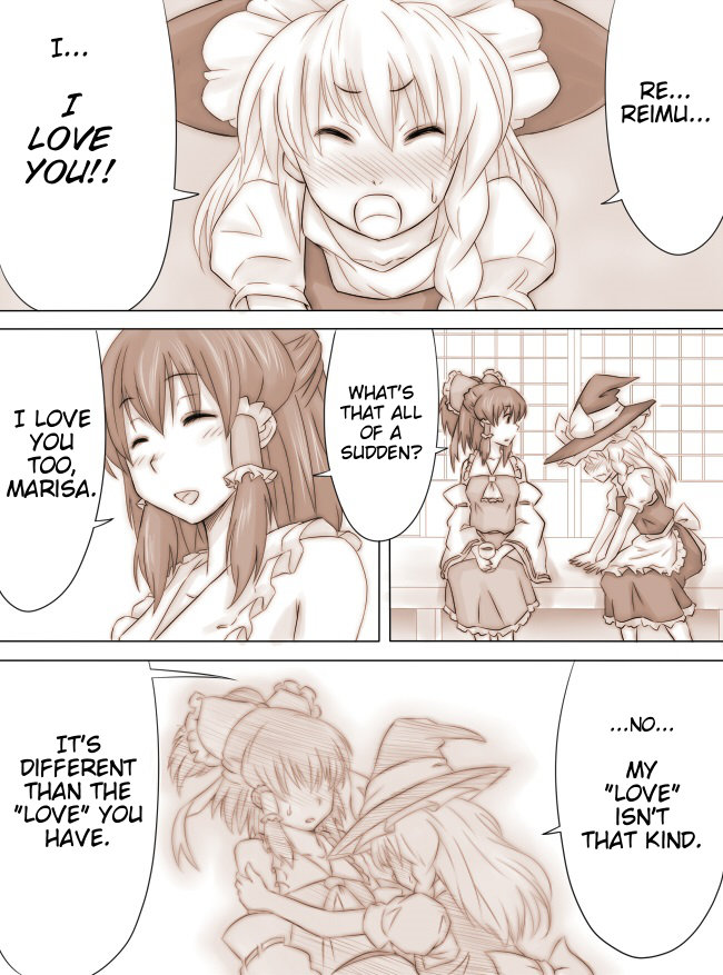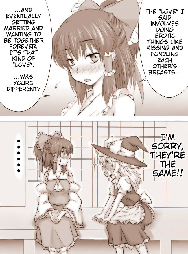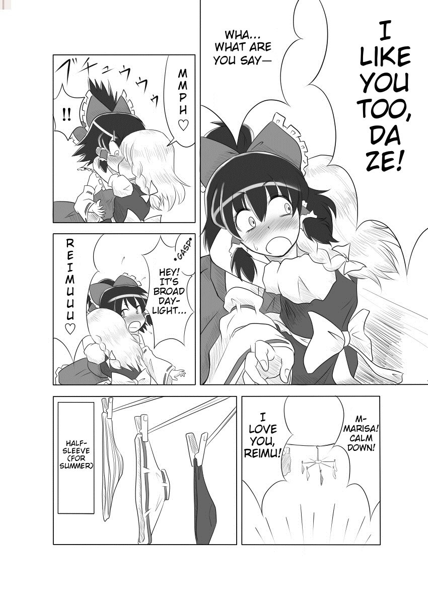 An assortment of **** shorts from Ao Usagi, focusing on Reimu x Marisa. I'm posting multiple because they're short. Prepare to feel your brain strip its gears, because this guy is something else. This first one is just called "Reimu X Marisa"