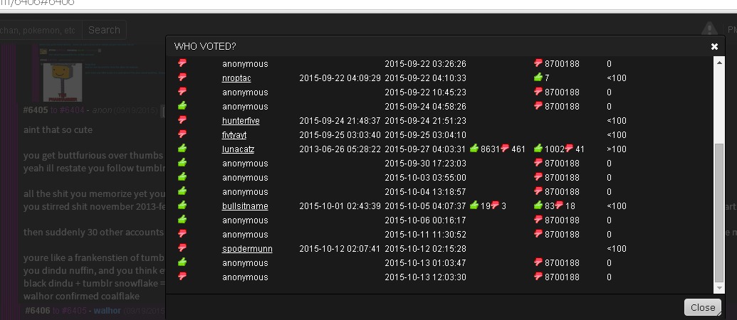 Anonymous on hating board, has been for 2 months, making new accounts just to thumb me and another user down.