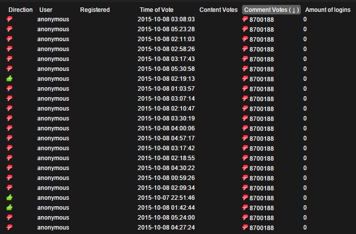 PLANET AND ELK ARE THE VICTIMS OF FAKE ACCOUNTS THUMBING THEM DOWN ALL THE TIME, AND PROBABLY YOU ARE THE DOWN THUMBER WE ALL WANT TO STOP IT. SOME NERVE YOU HAVE COMING HER TO BITCH ABOUT PEOPLE THUMBING THESE BULLIED GUYS UP TO HELP THEM FROM MR. HATE DOWN THUMBING THEM INTO OBLIVION.