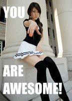 She's actually pissing herself because she doesn't know whether to be grossed out by his smell , creeped out by his looks and tipping , or turned on by his heroic day dream that somehow became reality