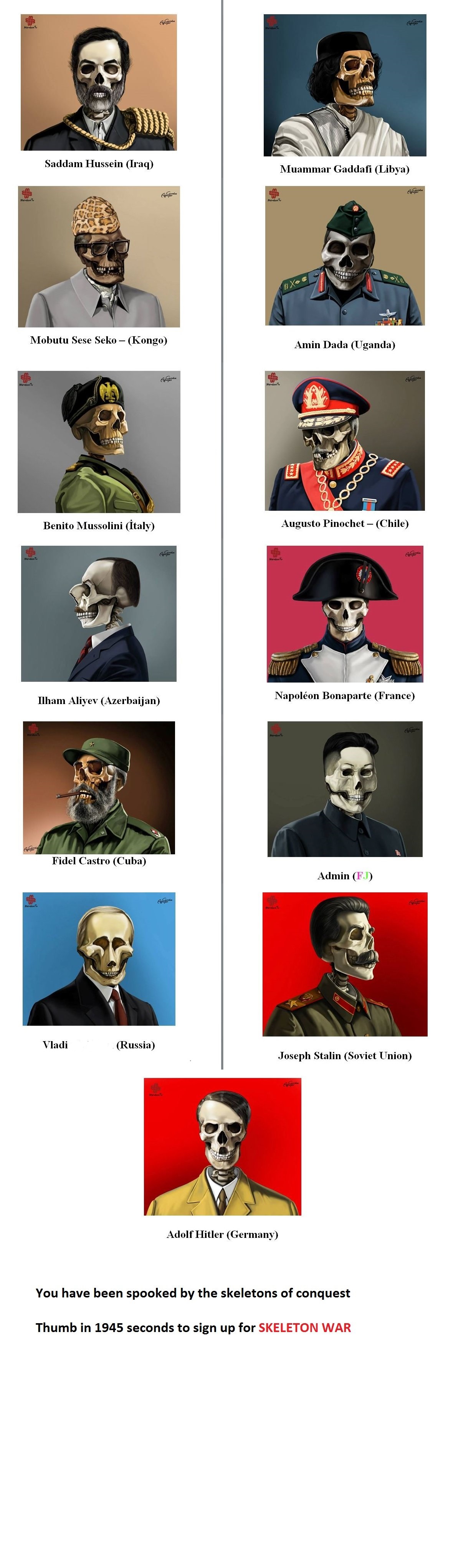 Premise could be that the leaders and their respective armies are resurrected for a real skeleton war, all jokes aside.