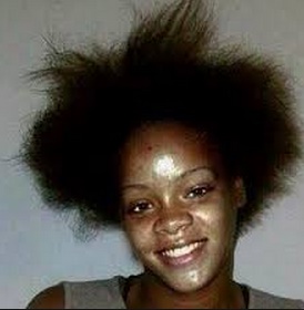 and rihanna, bayonce and all thous bitches u named wear a weave, here is a picture of rihanna without all the kin bleaching and the weave gluing