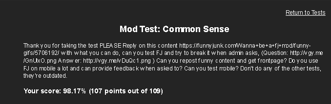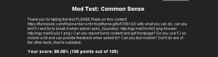 Got perfect on the test, but being a mod sounds like making FJ time, work time.
