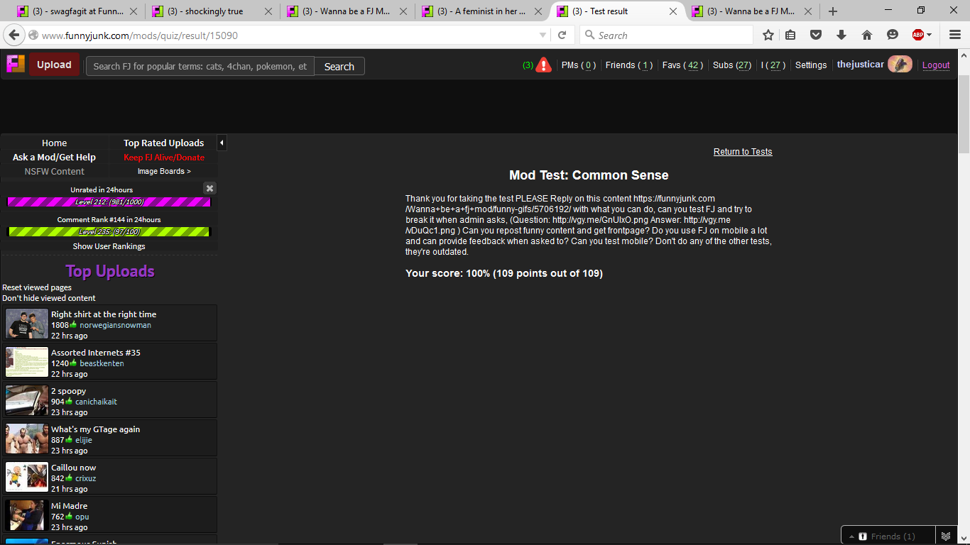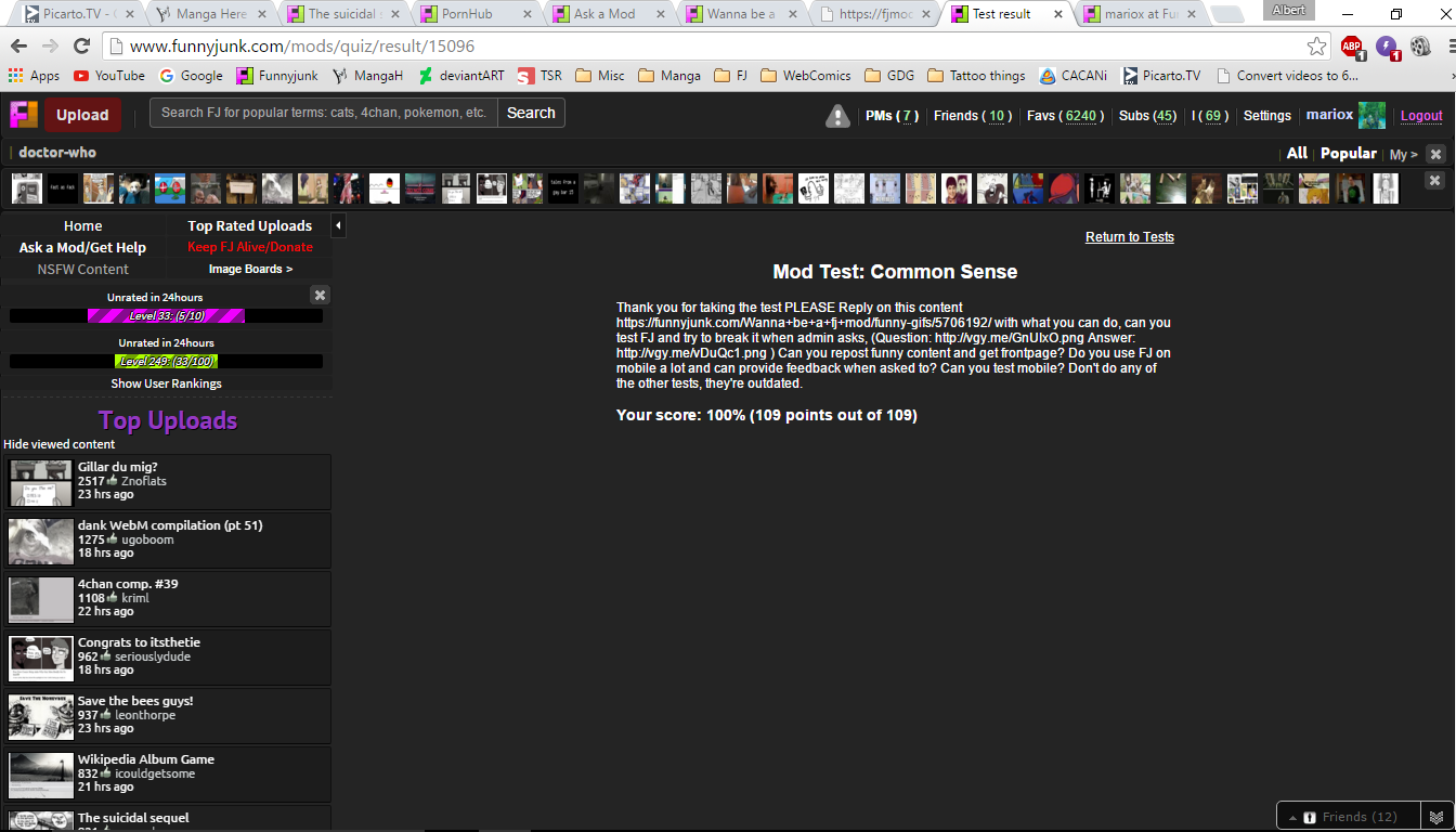 Well, I took the test and I think I did good. As far as questions and answering goes, I don't know a helluva lot about site coding, but I do try to find and report bugs whenever possible, and I'd love to learn a bit. I am on mobile most of the time, since I don't have a computer yet. So yeah, to become a mod would be great since I love this place. as far as I know, I can't take the posttwo test since I'm on mobile, but then again, that may just mean I failed it before I started