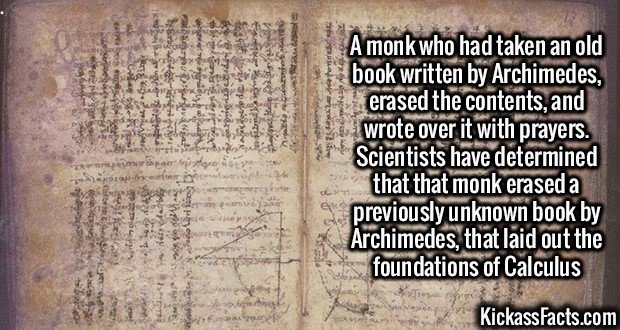 I imagine paper wasn't all that available back then. And Archimedies probably didn't write a which he intended others to read, and rather scribbled whatever he thought down on a bunch of papers. **** , even I have problem understanding by own scribbles when I know both the math behind it and what I was trying to achieve. The monk probably only saw a bunch on rubbish that wasted paper and decided it could be put to better use.