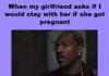 Well... I would stay with my girlfriend if she got pregnant because 1. I am a man and not the kind of dick that gets a girl pregnant and leaves. 2. I am not black. 3. I would have to take care of the kid even if it would ruin my life because I was raised that way. Good day sir.