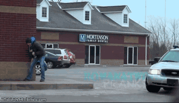 No he got out, but it was still a waste of their time and a load of ******** . The only comment I have is when the car was coming around he shouldnt have moved farther away. Kinda asking for it. But still