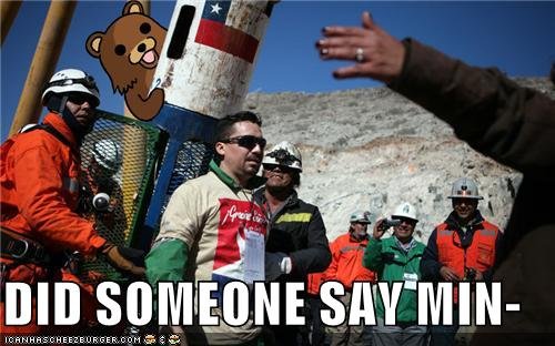 Chile Miners Flag mhatton (See more...) next random - Fav Favorite Comment ✖ Top NextComment Did someone say minors? Thumb if you liked! next Tags: Chile | miners | pedobear +9 Views: 1981 Favorited: 0 Submitted: 10/13/2010 Share On Facebook -Favorite +Favorite Unsub from mhatton Subscribe to mhatton