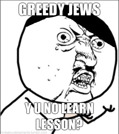 GREEDY JEWS Flag OMFGKitty (See more...) next random - Fav Favorite Comment ✖ Top NextComment Am I right? next Tags: greedy | jews | y u no | funny | Junk +12 Views: 3999 Favorited: 2 Submitted: 10/19/2010 Share On Facebook -Favorite +Favorite Unsub from OMFGKitty Subscribe to OMFGKitty