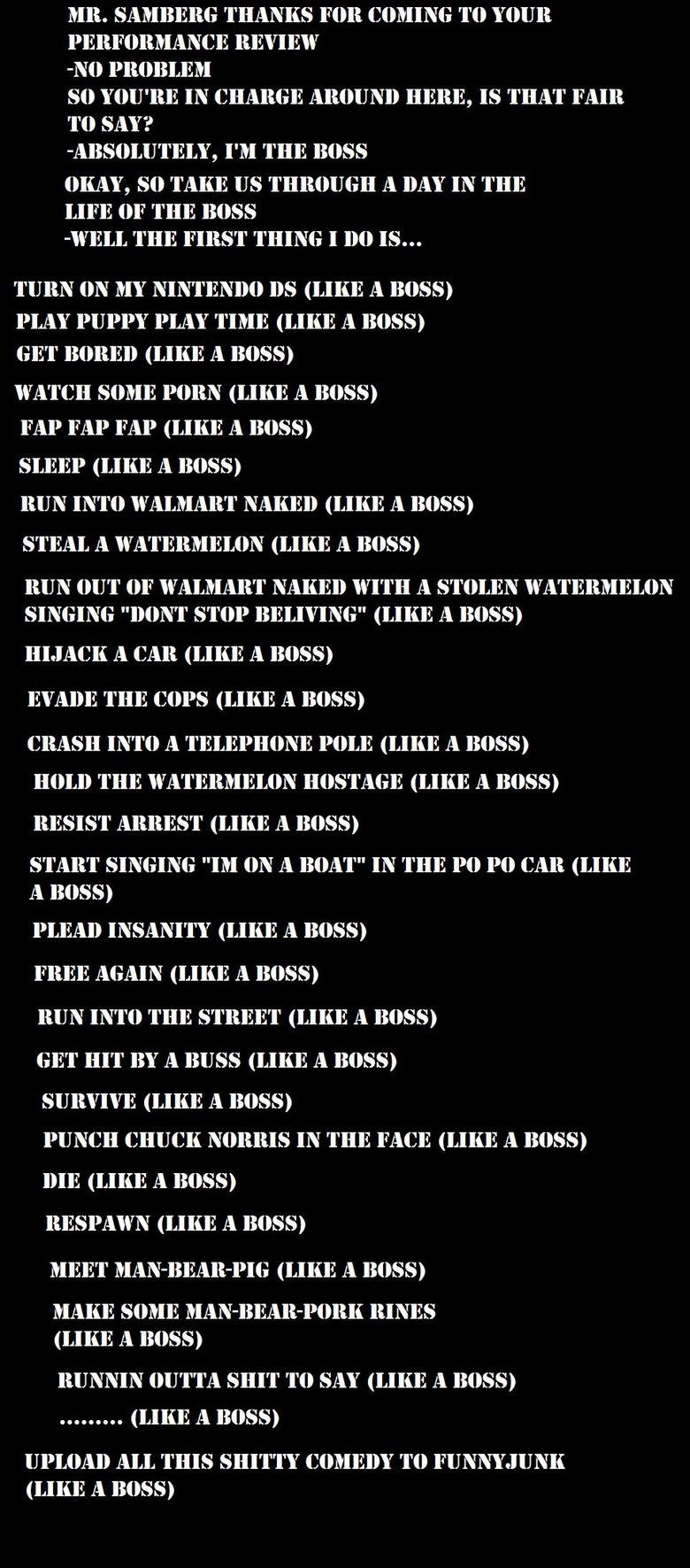 Like a Boss Flag BigOleJeezy (See more...) next random - Fav Favorite Comment ✖ Top NextComment (Enlarge) im so tired of typeing like a boss..... next Tags: like | a | God | Damn | Boss +2 Views: 695 Favorited: 0 Submitted: 11/04/2010 Share On Facebook -Favorite +Favorite Unsub from BigOleJeezy Subscribe to BigOleJeezy