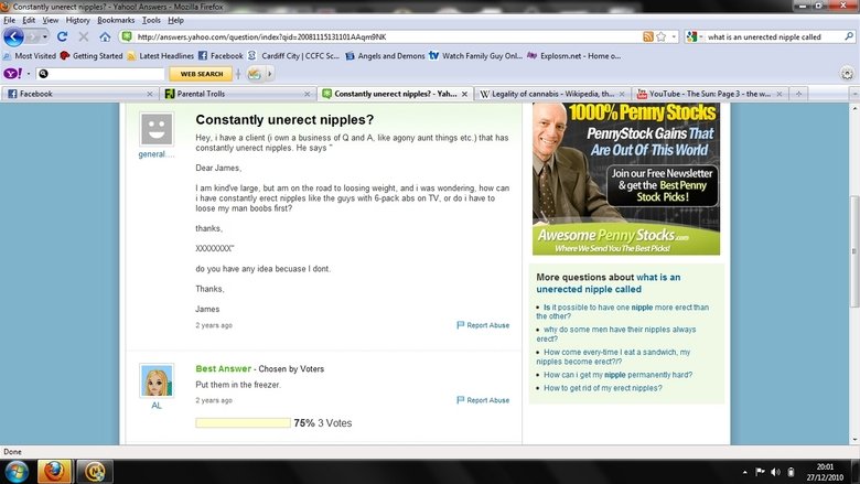 Nipples Flag Jowi (See more...) next random - Fav Favorite Comment ✖ Top NextComment (Enlarge) Funny Yahoo Answer next Tags: Yahoo answers +1 Views: 861 Favorited: 0 Submitted: 12/27/2010 Share On Facebook -Favorite +Favorite Unsub from Jowi Subscribe to Jowi