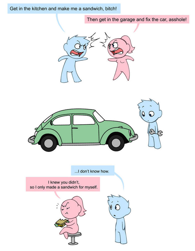 Get in the kitchen and make me e sandwich, bitch!