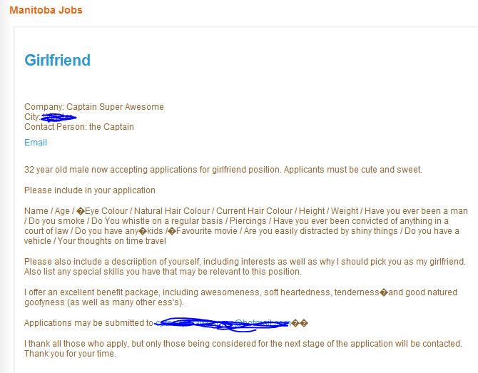 32 year old male now accepting applications for girlfriend position. Applicants must be cute and sweet.