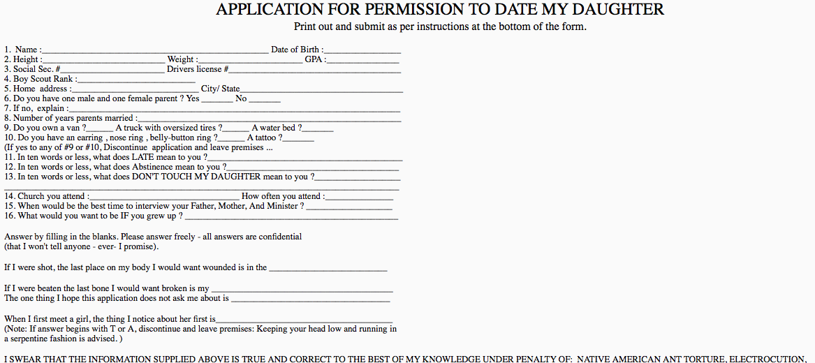APPLICATION FOR PERMISSION TO DATE MY DAUGHTER