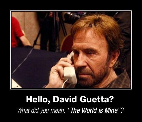 Hello, David Guetta? Flag strychnine (See more...) next random - Fav Favorite Comment ✖ Top NextComment next Tags: Chuck | Norris | is | Not | pleased +1 Views: 3210 Favorited: 1 Submitted: 08/16/2011 Share On Facebook -Favorite +Favorite Unsub from strychnine Subscribe to strychnine