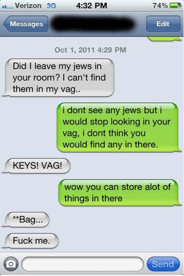 jews? in your vag? Flag laaxe (See more...) next random - Fav Favorite Comment ✖ Top NextComment next Tags: jews | vagina | the | game Messages Oct 1, 2: 111 we PM rem. id I leave mygems in l your reem? I aren' t find I them in my vaga, ... +10 Views: 1724 Favorited: 1 Submitted: 11/01/2011 Share On Facebook -Favorite +Favorite Unsub from laaxe Subscribe to laaxe