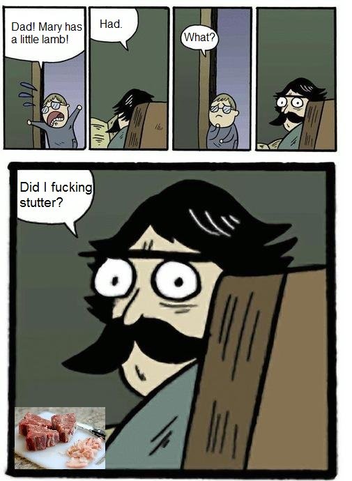 Staredad OC Flag makememesnotwar (See more...) next random - Fav Favorite Comment ✖ Top NextComment Just thought of this, didn't come out as planned, but go easy next Tags: stare | dad | OC Dad! Mary has a little lamb! ... +7 Views: 440 Favorited: 1 Submitted: 11/07/2011 Share On Facebook -Favorite +Favorite Unsub from makememesnotwar Subscribe to makememesnotwar