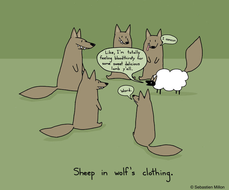 Sheep in Wolf's Clothing Flag sebreg (See more...) next random - Fav Favorite Comment ✖ Top NextComment (Enlarge) The most important thing in life is to always try and fit in. www.facebook.com/sebreg next Tags: Wolf | Sheep some sweer ¢\ e\ icelus ... +6 Views: 1498 Favorited: 0 Submitted: 11/07/2011 Share On Facebook -Favorite +Favorite Unsub from sebreg Subscribe to sebreg
