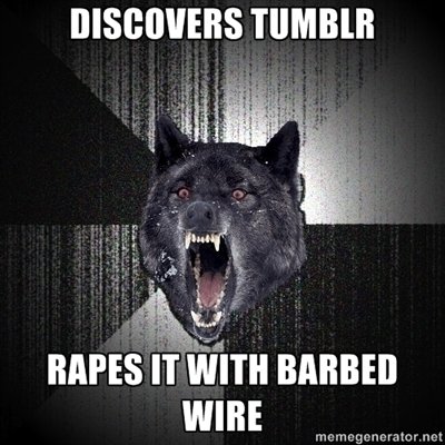 Insanity Wolf v Tumblr Flag thehobowizard (See more...) next random - Fav Favorite Comment ✖ Top NextComment **** Tumblr next Tags: Wolf | Rape | wire nuns IT WITH BARBER WIRE ... +9 Views: 1374 Favorited: 1 Submitted: 12/26/2011 Share On Facebook -Favorite +Favorite Unsub from thehobowizard Subscribe to thehobowizard