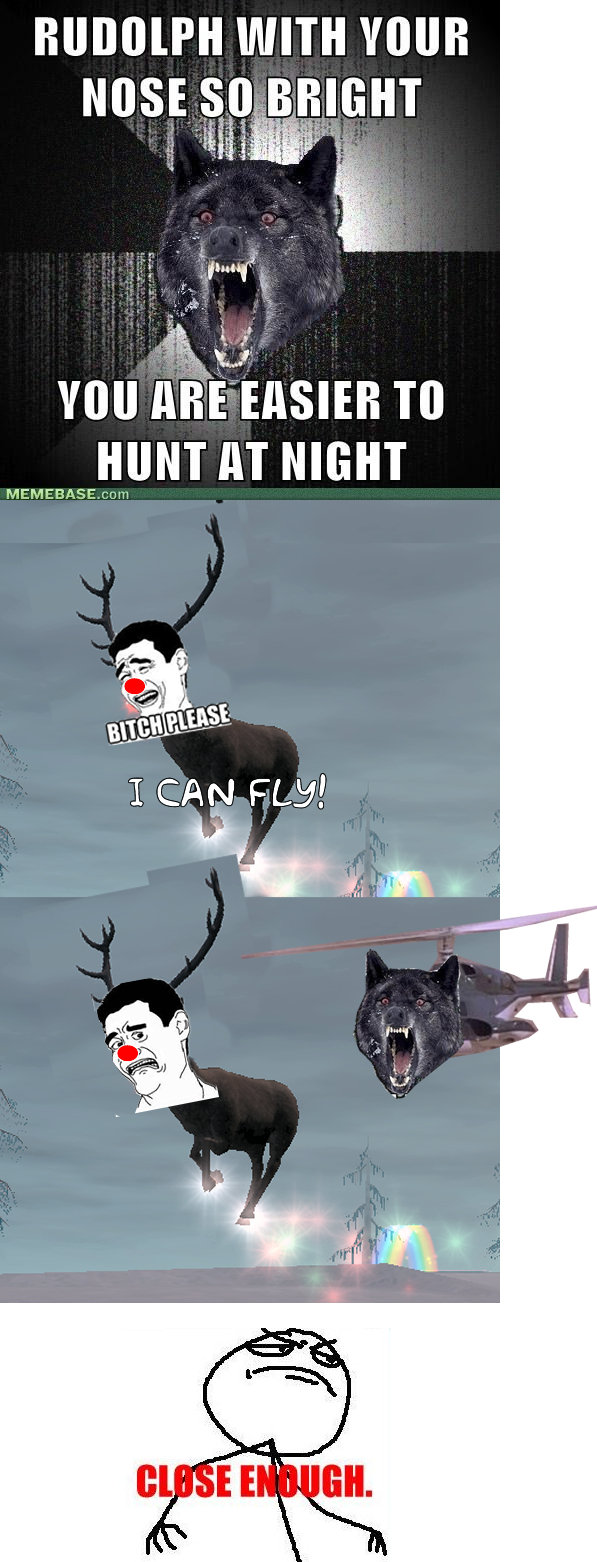 Re: Another christmas themed post; Fixed Flag waiyunoooo (See more...) next random - Fav Favorite Comment ✖ Top NextComment My 2nd attempt.. Huhu.. Don't hit me.. next Tags: bitch | please | bitch please | Rudolph | Wolf | airwolf | close | enough | close enough | Mehh WITH YOUR HUNT IIT NIGHT I CAN PLY! ... +9 Views: 770 Favorited: 0 Submitted: 12/27/2011 Share On Facebook -Favorite +Favorite Unsub from waiyunoooo Subscribe to waiyunoooo