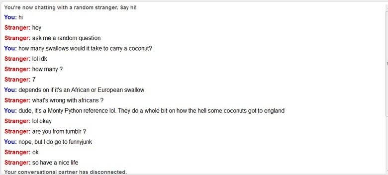 You: dude, it' s a Monty Python reference lol. They do a whole bit on how the hell some coconuts got to england