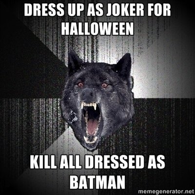 Joker Flag embennett (See more...) next random - Fav Favorite Comment ✖ Top NextComment "OC" Insanity Wolf for Nerds next Tags: Insanity Wolf | The Joker | batman | Nerds MESS " AS JOEE FDR MIL Jill. DRESSER AS BATMAN ... +8 Views: 1184 Favorited: 0 Submitted: 02/16/2012 Share On Facebook -Favorite +Favorite Unsub from embennett Subscribe to embennett