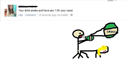 Drink Smoke and Have Sex. Flag chipposai (See more...) next random - Fav Favorite Comment ✖ Top NextComment I guess you could say I'm cool. next Tags: funny | facebook | lulz | OC | tags | are | Gay | thegame Tour drink smoke and have sex 7 Uh your maul. Th Like I Comment lal seconds agn:- mu mobile - itt ... +7 Views: 1396 Favorited: 0 Submitted: 04/02/2012 Share On Facebook -Favorite +Favorite Unsub from chipposai Subscribe to chipposai