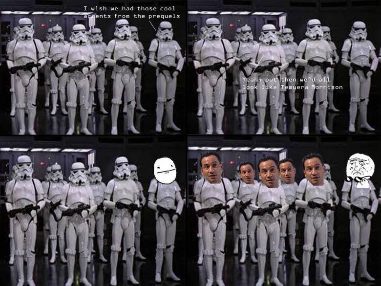 Stormtroopers miss the old days... Flag spidermeme (See more...) next random - Fav Favorite Comment ✖ Top NextComment (Enlarge) next Tags: stormtroopers | temuera morrison | mother of god | poker face | start wars | WTF | OC | accents I wish we had those cool ... +16 Views: 1412 Favorited: 1 Submitted: 04/12/2012 Share On Facebook -Favorite +Favorite Unsub from spidermeme Subscribe to spidermeme