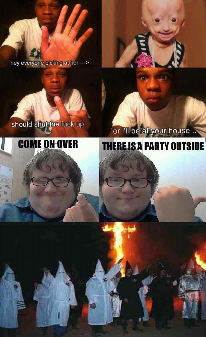 There's a party outside Flag beefymeef (See more...) next random - Fav Favorite Comment ✖ Top NextComment I smell high amounts of racism in this post ... And kfc next Tags: nigger | picking | on | alien | gonna | find | You | KKK | Party | Chicken | watermelon | KFC shoiuld Sh **** use ... +10 Views: 2590 Favorited: 0 Submitted: 07/25/2012 Share On Facebook -Favorite +Favorite Unsub from beefymeef Subscribe to beefymeef