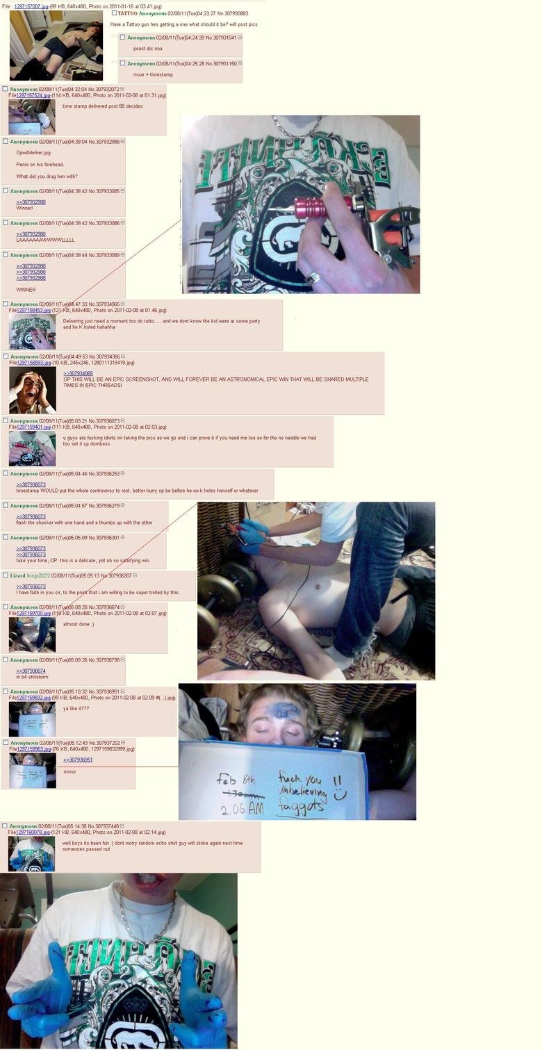 i mean, even with todays technique it's impossible to remove a tattoo properly without making scartissue, so because of some asshole wanting to show up to te internet that boy got something permanent on his goddamn forehead.. the douche should get one himself aswell!