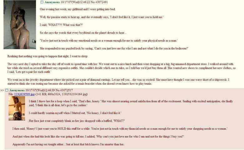 She responded to my puzzled look by saying, C ant yen just love me for who I am and not what I do for yen in the bedroom?'