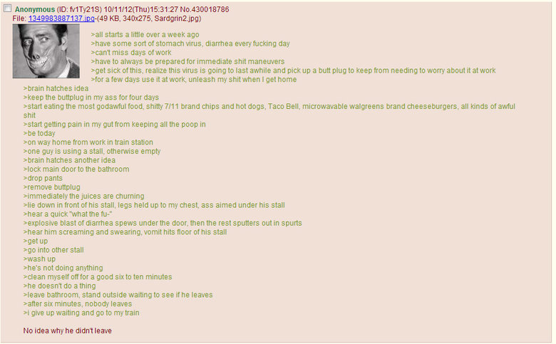 shear him screaming and swearing, vomit hits floor ethis stall