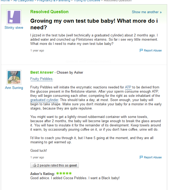 Good advice. I added Cocoa Pebbles. I want a Black baby!
