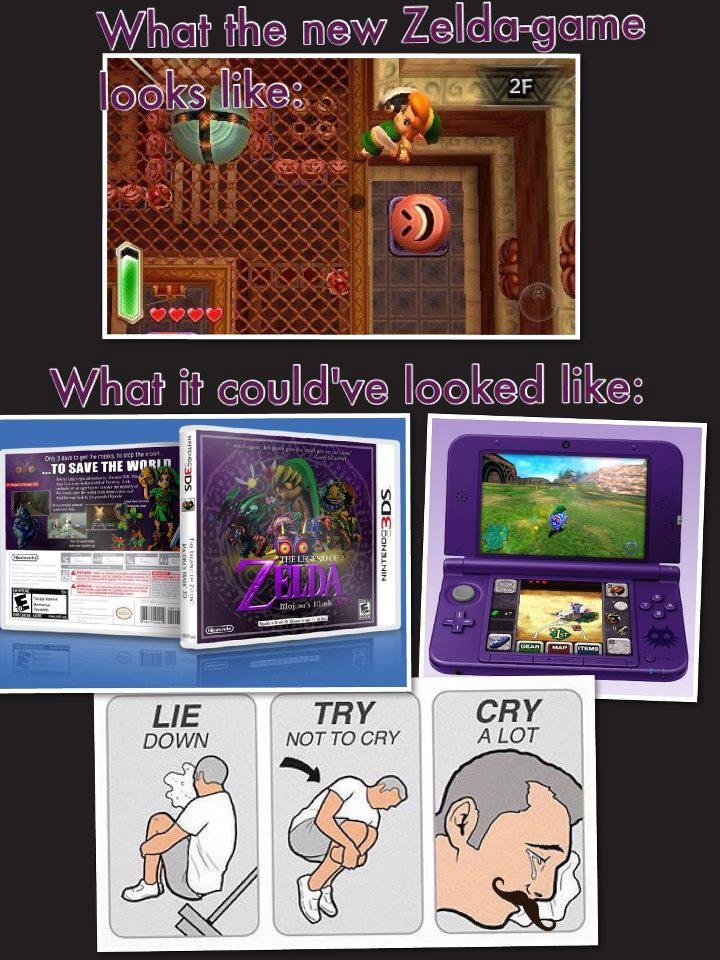 This whole ******* post is a good example on how unpleasable Nintendo fans are. Just wait. It'll come eventually. Go to Miiverse, whine and bitch about Majora's mask not being on the 3ds. That should bring into Nintendo's attention that people want a remake of that too.